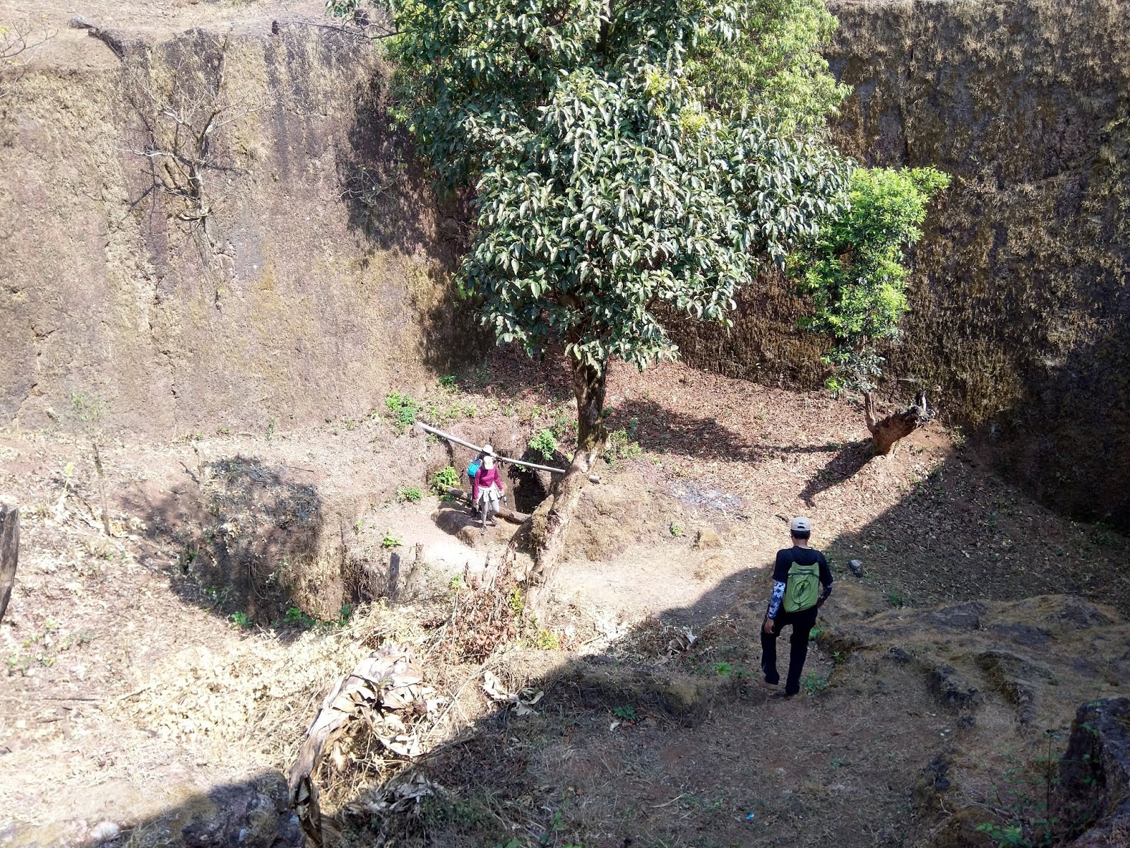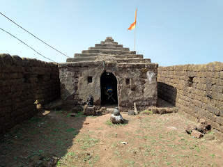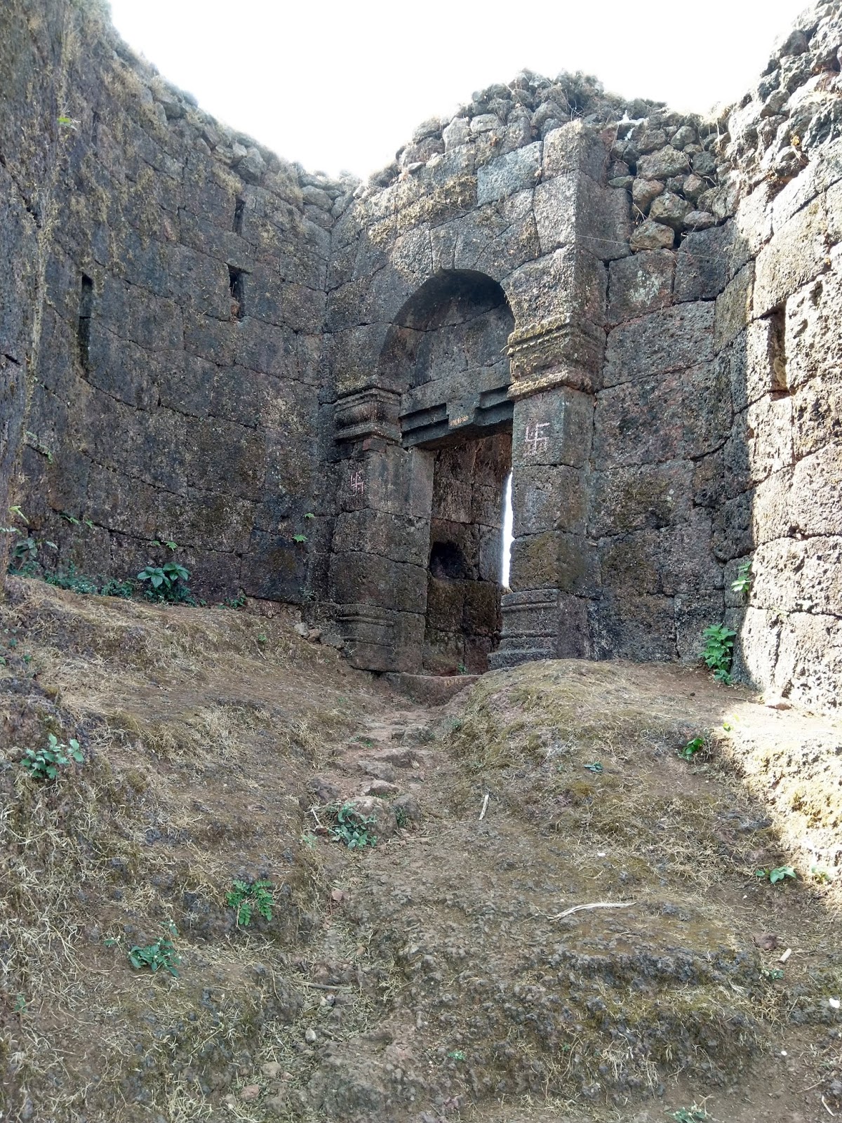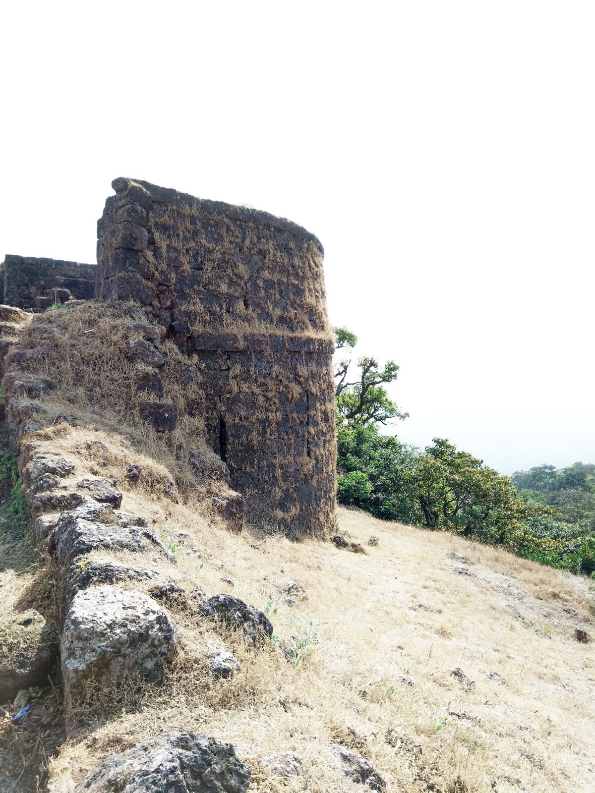 ह्याच मंदिरांपैकी एका मंदिरासमोर रेखीव तुळशी वृंदावन आहे. हे सर्व पाहून थेट डाव्या बाजूने गडाला प्रदक्षिणा घालायला सुरुवात केली आणि गडाची तटबंदी आजही चांगल्या अवस्थेत आहे हे दिसले.पुढे जाऊन उजव्या बाजूला वळल्यावर काही पडक्या वास्तूंचे अवशेष दिसतात.ह्या वास्तूंच्या पुढे दोन बुरुज लागतात ज्यावर जाता येते त्यातील दुसरा बुरुज ढासळला आहे.हे पाहून मी गडाच्या प्रवेशद्वारापाशी जाण्याआधी गडाच्या मध्यभागी असलेली मोठी विहीर पहायला गेलो , विहिरीचा आकार खूप मोठा आहे ह्या विहिरीने सामानगडाची आठवण करून दिली .