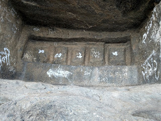 असो साधारण ५ च्या सुमारास राजधेरचा माथा गाठण्यासाठी नव्याने लावलेल्या शिडीजवळ पोहोचलो.ह्या शिडीच्या आधी खाली पाण्याचे भले मोठे टाके लागते टाक्याच्या समोर कमानी सदृश्य बांधकाम पाहायला मिळते.शिडी चढल्यावर उजव्या बाजूला फारसी लिपीत शिलालेख कोरला आहे.शिलालेख पाहून सरळ कातळात कोरलेल्या पायऱ्यांच्या मार्गाने किल्ल्यावर जाता येते.वाटेत पायऱ्यांच्या मार्गात डावीकडे गुहा आहेत ह्या गुहा पहिल्या कि बौद्ध लेण्यांमध्ये आढळणारे बांधकाम आठवते आणि मला खात्री आहे ह्या गुहा पुरातन असणार.