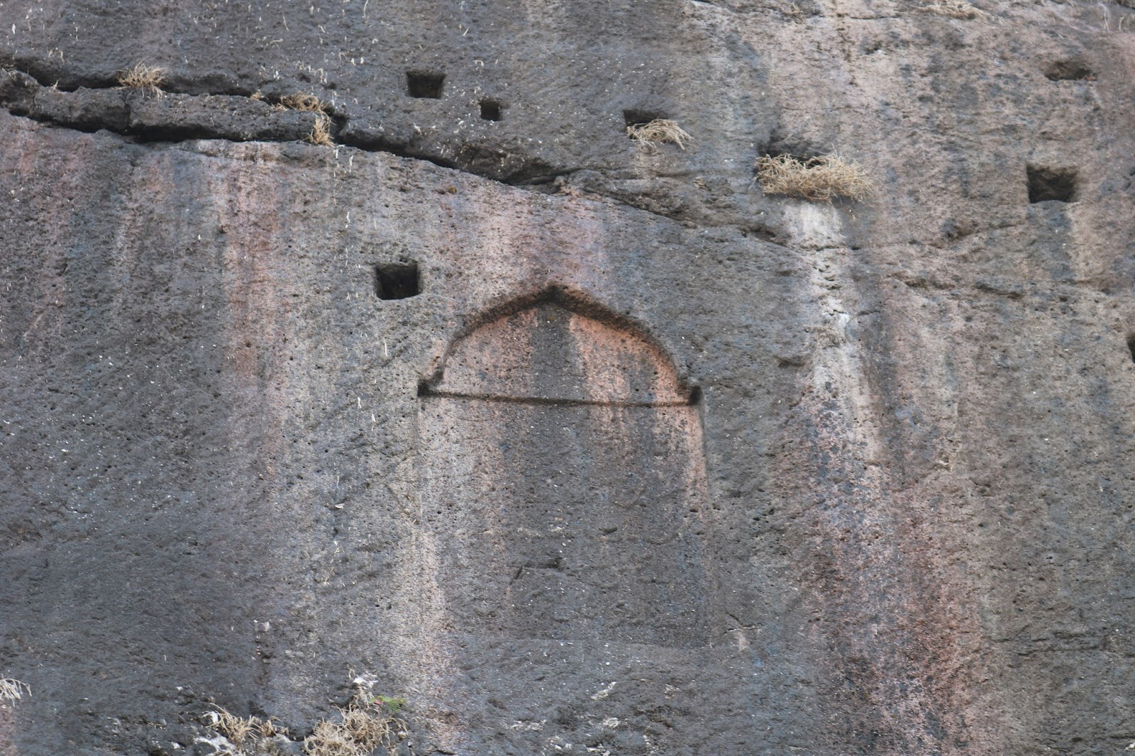 शिडीच्या उजव्या बाजूकडील पायरी मार्गाची साक्ष देणारा कोनाडा