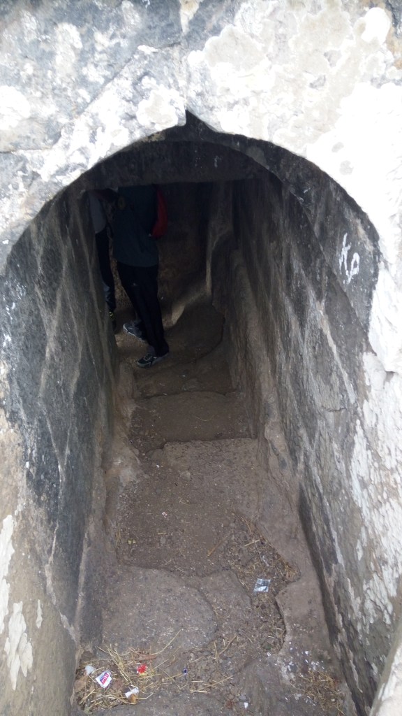 साधारण ४५ मिनिटे ते १ तासाच्या चढाई नंतर आपण गुहेपाशी पोहोचतो.ह्या गुहेत शिवपिंड ठेवलेली आहे. हि गुहा पाहून सरळ गेल्यावर श्री रामाचे मंदिर लागते मंदिराच्या मागच्या भिंतीवर (जी किल्ला चढताना समोर लागते) एक शिलालेख कोरलेला आहे.ह्या शिलालेखावरचा मजकूर हा पुढील प्रमाणे आहे –
