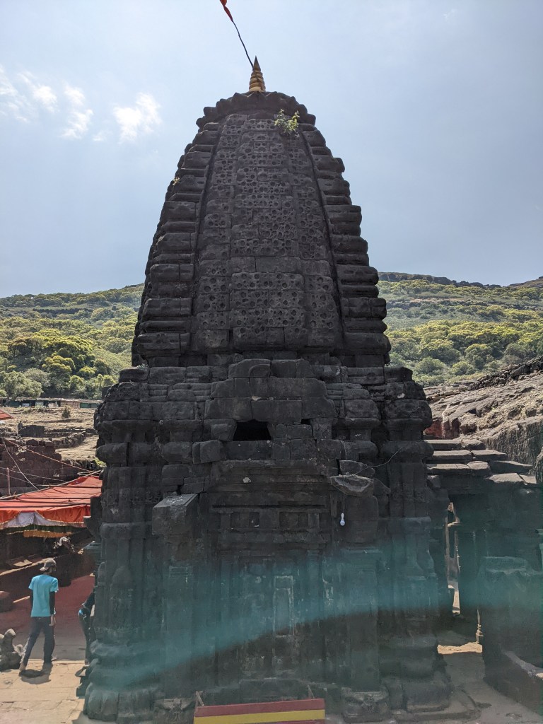 साधारण दुपारच्या सुमारास मी मागील भागात सांगितल्याप्रमाणे हरिश्चन्द्रेश्वर मंदिर परिसरात आलो. ह्या परिसरात आल्यावर सगळा थकवा गेला आणि मी तुम्हाला खात्रीने अनुभवाने सांगू शकतो कि संपूर्ण मंदिर परिसरात अत्यंत दैवी स्पंदने अनुभवायला येतात.मी महाशिवरात्रीच्या २ दिवसाआधी गडावर असल्याने गर्दी तर होतीच पण तेवढेच वातावरण भक्तिमय होते. गेल्या गेल्या भूक लागलेलीच आणि समोर आला तो महादेवाचा महाप्रसाद!!!!.अत्यंत झणझणीत तिखट कोबीची भाजी , भात आणि शेवटी राजगिरा लाडू असा बेत होता.महाप्रसाद खाऊन मी मंदिर बघायला सुरुवात केली. हरिश्चंद्रेश्वर मंदिराची पडझड झाली असली तरी मंदिर दिमाखात पौराणिकतेची आणि ऐतिहासिकतेची साक्ष देत उभे आहे.हरिश्चंद्रेश्वर मंदिराच्या प्रवेशद्वाराबाहेर किर्तीमुखाची ३ ते ४ शिल्प ठेवलेली आहेत.तसेच प्रवेशद्वारा शेजारी द्वारपाल कोरले आहेत.मंदिरावरील काही शिल्प झिजले आहेत तसेच दोन्ही बाजूपैकी पश्चिमेकडीन प्रवेशद्वाराचे दोन्ही खांब थोडे झिजले आहेत.मंदिराच्या पूर्वेकडील प्रवेशद्वाराच्या दोन्ही बाजूला उत्कृष्ट हत्ती शिल्प कोरले आहेत.मंदिराचा कळस त्यावरील कळसाची झीज झाली असली तरी कळस पूर्ण शाबूत आहे. माझ्या सहकारी मित्राकडून आणि काही गावकऱ्यांकडून समजले कि ह्या कळसाकडे आतील मार्गातून वर जाता येते परंतु तूर्तास आता हा मार्ग बंद आहे.गाभाऱ्यात चौकोनी शिळेवर चार छोटे लिंग कोरले आहेत आणि त्याच्या बाजूला नव्याने शिव लिंग ठेवले आहे.