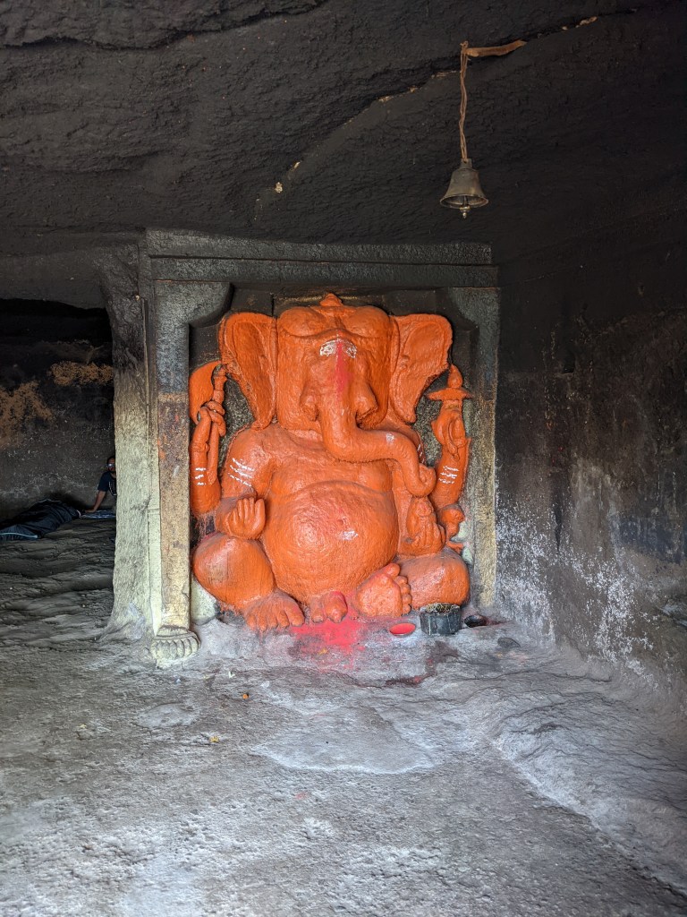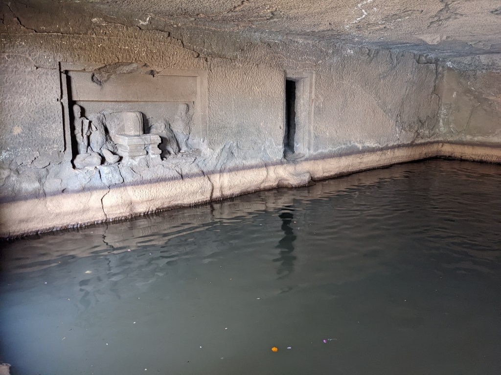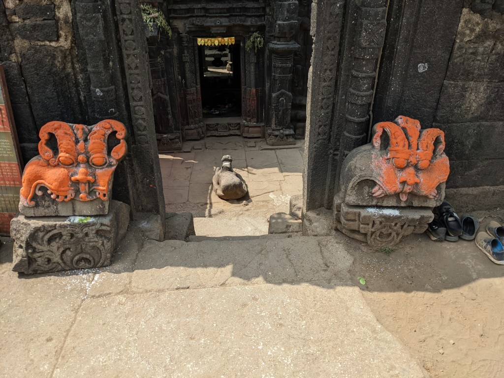 आपण मंदिरात जिथून प्रवेश करतो त्याच्या समोरच्या प्रवेशद्वारासमोर बहुदा पूर्वेकडील प्रवेशद्वारासमोर नंदीची मूर्ती दिसते. नंदीवर कोरीव काम केले आहे पण ते आता झिजले आहे. नंदीच्या उजव्या बाजूला उध्वस्थ मूर्ती ठेवली आहे.नंदीच्या मागे दोन गुहा आहेत त्यातील एका गुहेत एक छोटेखानी चौकोनी भुयार आहे. ह्या भुयारात चांगदेवांनी तप केले अशी गावकऱ्यांमध्ये श्रद्धा आहे.हे भुयार पाहून बाजूला पाण्याचे उत्तम टाके आहे.संपूर्ण मंदिर परिसराची तहाण हे पाण्याचे टाके भागवते. ह्या टाक्यातील पाणी अत्यंत थंडगार आहे. मंदिरात येण्याआधी आम्ही लिंबू सरबत प्यायले होते ते एवढे थंडगार का लागले त्याचे गुपित मला टाक्यातील पाणी पिऊन समजले. असे टाक्यातले स्वच्छ आणि थंड पाणी मी ह्या आधी तरी प्यायलो नव्हतो.टाक्याच्या उजव्या बाजूला म्हणजे मंदिराच्या बहुदा दक्षिणेकडे सिद्धविष्णू महामंदीर आहे.आत गाभाऱ्यात फक्त चौथरा आहे. मंदिरावरील नक्षीकाम उत्कृष्ट आहे आणि उत्तम अवस्थेत आहे.सिद्धमंदिरा बाजूला छोटी गुहा आहे.सिद्धविष्णू मंदिरासमोर गणेशाची शेंदूर लावलेली सुपरिचित मूर्ती ठेवली आहे.मूर्ती पाहून हि बहुदा नंतर आणून ठेवलेली असावी असे वाटते.गणपतीची मूर्ती अत्यंत देखणी आहे, जरी शेंदूर फासला असला तरी तिचे सौंदर्य कमी झाले नाही आहे.