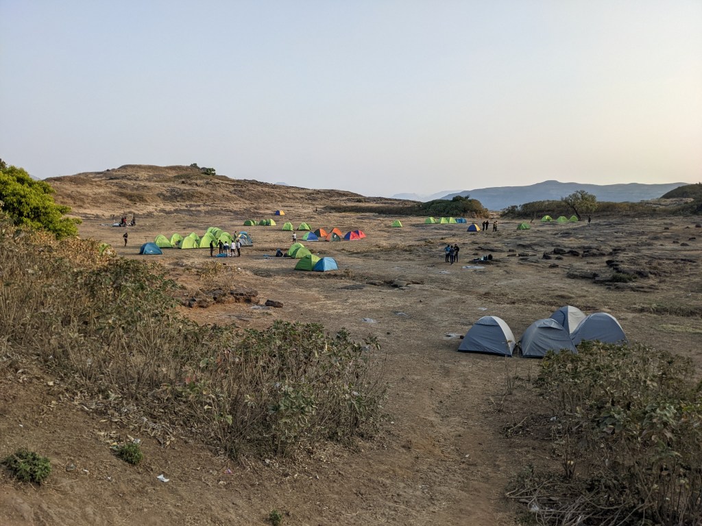 सूर्यास्त व्हायला लागला तसे आम्ही पाचही जण शांत बसून गप्पा मारत होतो.आमच्याबरोबर आमचा सहावा ट्रेकक्षितिज संस्थेतील मित्र पण नेमका कड्यावर भेटला तोहि आमच्यात सामील झाला.निसर्गाचा विहंगम सोहळा डोळ्यात साठवून पाहत होतो, एव्हाना मनात भरलेली धडकीहि नाहीशी झाली.सूर्यास्त झाल्यावर सकाळी कड्याला पुन्हा भेट द्यायची हे मनाशी पक्के करून कड्याच्या पठारावर टेन्ट मध्ये आलो.कड्यावर टेन्ट मध्ये राहणे म्हणजे आणखी एक विलक्षण सोहळा आहे असे मला वाटते कारण रात्री संपूर्ण अंधार असतो शेकोट्या पेटलेल्या असतात आणि असे वाटते कि एखादी लांब कोणा मोठ्या सरदाराची छावणी पडली आहे .अशा वेळेस गार वारा अंगावर घेत टॉर्च च्या मंद प्रकाशात कड्यावर फिरण्याची मजा काही औरच.गम्मत म्हणजे एवढी गर्दी असताना कोणीही उगाच एखाद्याच्या टेन्ट समोर येऊन आवाज करणे किंवा मोक्याची जागा हेरण्याचा प्रयत्न करणे हे असले काही प्रकार तुम्हाला दिसणार नाहीत ह्याचे कारण ह्या जागेचे असलेले ट्रेकर च्या मनातील स्थान आणि वातावरणातली स्पंदन. अत्यंत शिस्तबद्ध पद्धतीने सर्व जण राहतात निदान मला तरी हा अनुभव आला आहे .जेवण झाल्यावर आकाशात पडलेले चांदणे पाहत गप्पा टप्पा मारत टेन्ट मध्ये राहण्याचा अनुभव घेत झोपी गेलो.