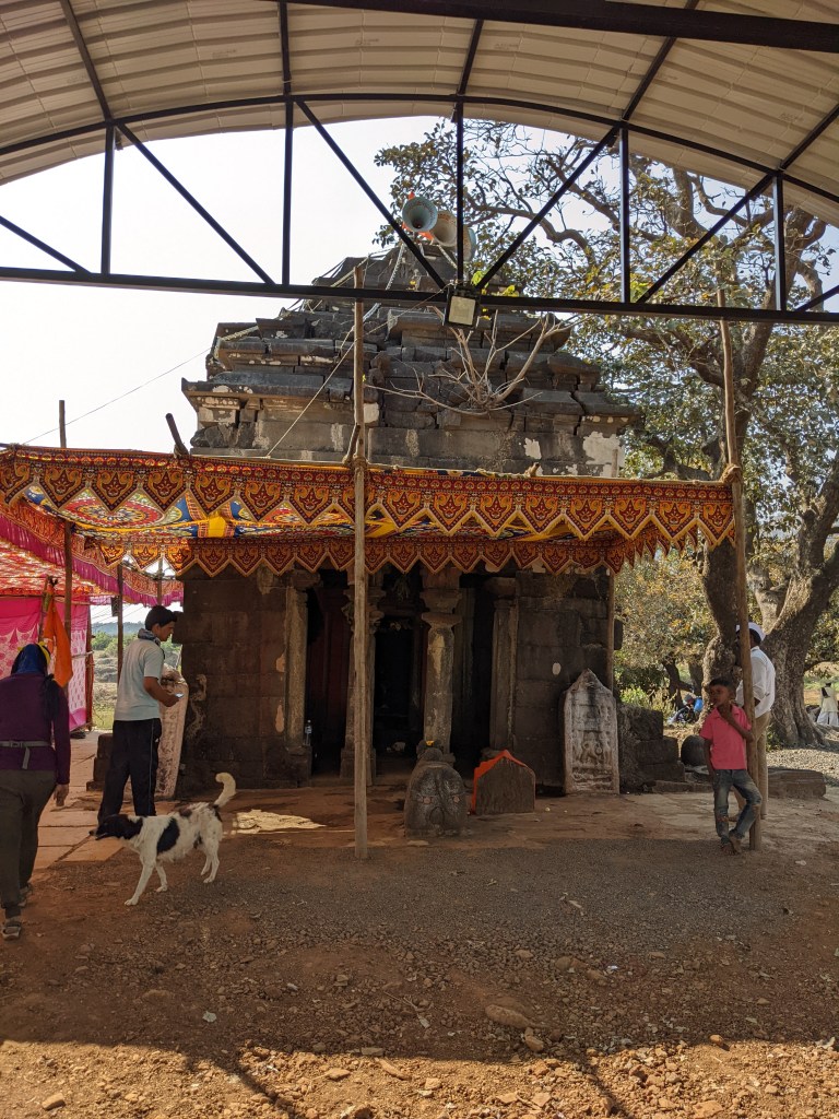 सकाळी उठून पुन्हा कड्यावर फेरा मारला ह्या वेळेस कड्याच्या उजव्या बाजूस म्हणजे नळीच्या वाटेच्या बाजूने फेरफटका मारला.उजव्या बाजूस आजोबा पर्वत, सीतेचा पाळणा हि शिखरे दिसतात.फेरफटका मारून ९.३० च्या सुमारास कोकणकड्याच्या निरोप घेऊन खिरेश्वर मार्गाने उतरायला सुरुवात केली.आम्ही चढलो ती जुन्नर दरवाज्याची वाट किल्ला चढताना बालेकिल्ल्याला डावीकडून वळसा घालते तर खिरेश्वर वाट उजवीकडून येते.वाट तशी सोपी आहे परंतु काहीठिकाणी निमुळती असल्याने रेलिंग्ज लावलेले आहेत. काही पॅच शांतपणे दगडाचा आधार घेऊन उतरावे . उतरताना बॅग पाठीला असल्याने विशेषताना बॅग कुठे दगडाला घासणार नाही किंवा बॅगेची अडचण होत आहे का ते नीट पाहावे.खिरेश्वर वाट उतरताना बेलाग डोंगर आपली साथ करत असतो.साधारण सव्वा ते दिड तासात आपण बऱ्यापैकी उतरलेले असतो परंतु शेवट पर्यंत आता संपेल नंतर संपेल हेच कायम जाणवत राहते.खिरेश्वर वाटेचे जंगल सुरु झाल्यावर जंगलाच्या तोंडावर वाघाचे शिल्प शेंदूर फासून ठेवले आहे.हे शिल्प पाहून आपण जंगलातून साधारण ४० मिनिटांत खिरेश्वर च्या पायथ्याला पोहोचतो.पायथ्याला पोहोचल्यावर आम्ही गाईड कडे पोटभर जेवलो. मटकीची भाजी, चपाती, लोणचे, पापड असा साधा बेत होता. जेवून परतीच्या वाटेवर लागण्याआधी खिरेश्वर मंदिराला भेट दिली.हे मंदिर सुद्धा पुरातन मंदिर आहे. मंदिराची थोडी पडझड झाली असली तरी हरिश्चंद्रेश्वर मंदिराप्रमाणे खिरेश्वर मंदिर आपली ऐतिहासिक साक्ष आजही टिकून आहे. मंदिराच्या प्रवेशद्वारावर शेषयायी विष्णू व त्यांच्या परिवाराचे शिल्प कोरले आहे. तसेच बाहेरील सभामंडप छताला सोळा शिल्पपट कोरले आहेत. मंदिराच्या कळसाची जरी थोडी पडझड झाली असली तरी कळसाची रचना आणि संपूर्ण कळस शाबूत आहे.मंदिराच्या कळसाच्या मागील बाजूस खाली एक अप्रतिम शिल्प कोरले आहे .शिल्प कसले आहे ते कळत नाही पण शिल्पातल्या मूर्तीतले भाव व्यवस्थित आजही दिसतात. मंदिराबाहेर मला पुन्हा एक काका ब्रह्मविणेवर ताण वाजवताना दिसले. मंदिराबाहेर दोन ते तीन शिवपिंडी ठेवल्या आहेत. खिरेश्वर मंदिर पाहून परतीच्या प्रवासाला सुरुवात केली आणि बरोबर ५ वाजता कल्याण गाठले.