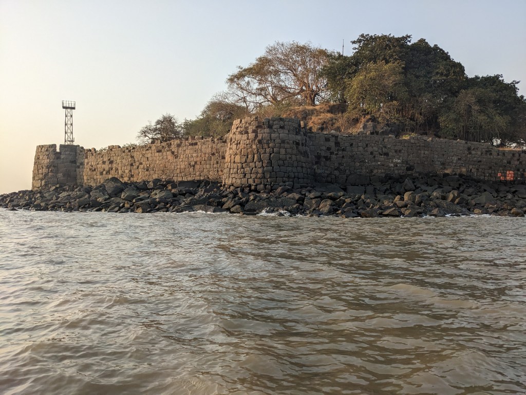 थळ ला पोहोचल्यावर खांदेरी आणि उंदेरी हे दोनही किल्ले दिसतात.इंग्रजी पत्रांमध्ये अनुक्रमे ह्या किल्ल्यांची नावे हेनरी आणि केनरी अशी येतात.बोट पकडून साधारण २० मिनिटांत ते अर्ध्या तासात किल्ल्याजवळ पोहोचलो. सकाळची भरतीची वेळ असल्याने बोट वाऱ्यामुळे लाटांवर अगदी स्वार होऊन वर खाली होत होती.किल्ल्याला सध्या कान्होजी आंग्रे द्वीप असेही म्हंटले जाते.किल्ल्यावर बांधलेल्या धक्क्यावर पोहोचल्यावर उजव्या बाजूने किल्ला फिरायला सुरुवात करावी.पहिला बुरुज पार केल्यावर लगेच वेताळाचे मंदिर लागते. गावातील कोळी बांधवांची ह्या वेताळावर खूप श्रद्धा आहे.मंदिरात आत इंग्रज काळातील घंटा अडकवली आहे, जिच्यावर वर्ष १८९१ कोरले आहे. मंदिराच्या भिंतीवर “स्वान साहेब ह्याने शंभर रुपये देऊन हे मंदिर बांधले तारीख १२ मे १८६७ असे लिहिले आहे. ह्यास लिखित पुरावा आहे का ते शोधावे लागेल”. मंदिर पाहून तटबंदीवर चालायला सुरुवात करावी. सर्वप्रथम एक बुरुज लागतो ज्यावर दोन तोफा ठेवल्या आहेत.पुढे सरळ चालत गेल्यावर एका बुरुजाच्या खालून तटात छोटा दरवाजा कोरला आहे. दरवाजातुन खाली उतरून मी किल्ल्याची दगडावर दगड रचून केलेली तटबंदीची रचना न्याहाळली.किल्ल्याच्या टोकाला बुरुजासमोर पाण्याचे एक तळे पाहायला मिळते व तळ्यात तुळशी वृंदावन सदृश्य बांधकाम केले आहे.