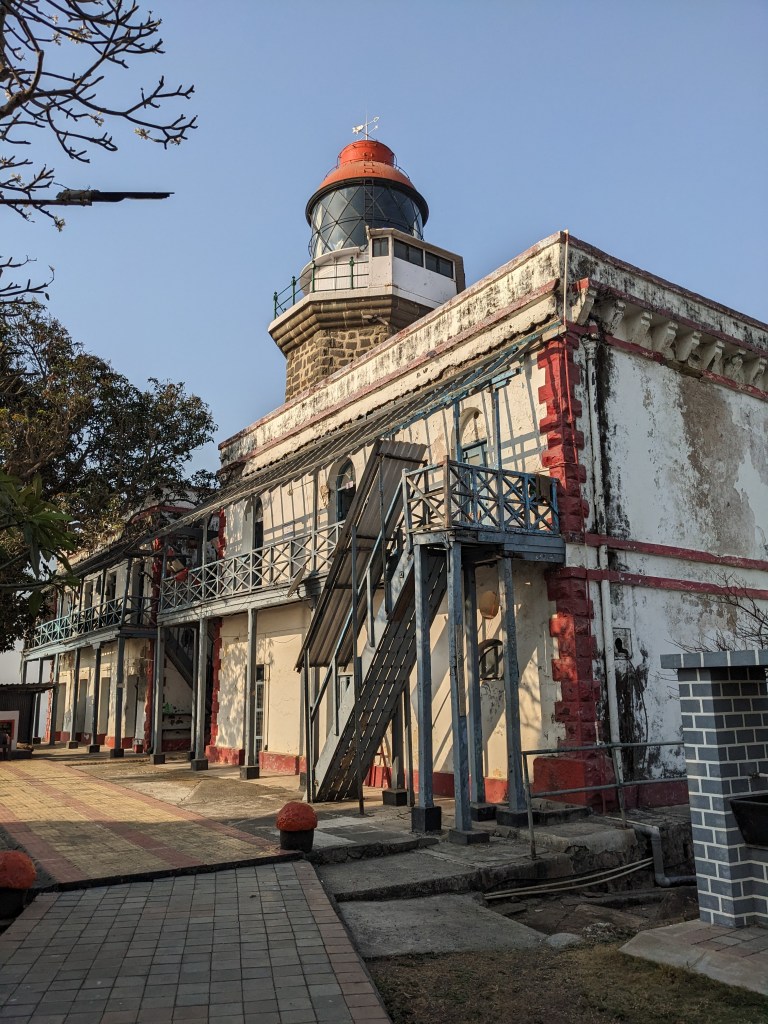 तळे पाहून समोर नव्याने बांधलेल्या पायऱ्यांच्या साहाय्याने वर चढून किल्ल्यावर असलेले ब्रिटिशकालीन दीपगृह पहायला गेलो.वरती दिपगृहाच्या सर्वोच्च भागापर्यंत गेलो. तिथे दिपगृहाच्या अधिकाऱ्यांनी दिपगृहाच्या काम करण्याच्या पद्धतीवर माहिती दिली.दिपगृहाच्या बांधकामावर ब्रिटिश स्थापत्य शैलीचा प्रभाव दिसतो.इसवी सण १८६७ साली हे दीपगृह ब्रिटिशांनी बांधले.दीपगृहावरून खांदेरी किल्ला आणि आसपासच्या समुद्राचे विहंगम दृश्य दिसते. दिपगृहाच्या खाली छोटेखानी बाग केली आहे. बागेच्या प्रवेशद्वाराच्या बाजूला ब्रिटिश बनावटीच्या तोफा ठेवल्या आहेत.बाग पाहून खाली उतरून डावीकडे वळायचे आणि किल्ल्याच्या मुख्य धक्क्याकडे जाण्यास पुन्हा वळायचे. वाटेत एक खडक पाहायला मिळतो ज्याच्यावर काही मोजक्या जागेत छोट्या दगडाने मारल्यावर भांड्यांच्याआवाजासारखा आवाज येतो.हा खडक पाहून पुन्हा किल्ल्याच्या मुख्य वाटेवर आलो . इथे वाटेत मारुतीचे मंदिर लागले आणि एक तोफ ठेवलेली दिसली.इथे आपली खांदेरी किल्ल्याची गडफेरी संपते.