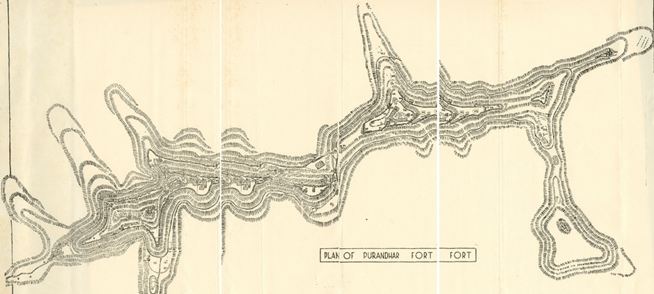 पुरंदर किल्ल्याचा हर्मन गोऐट्झ ने काढलेला नकाशा